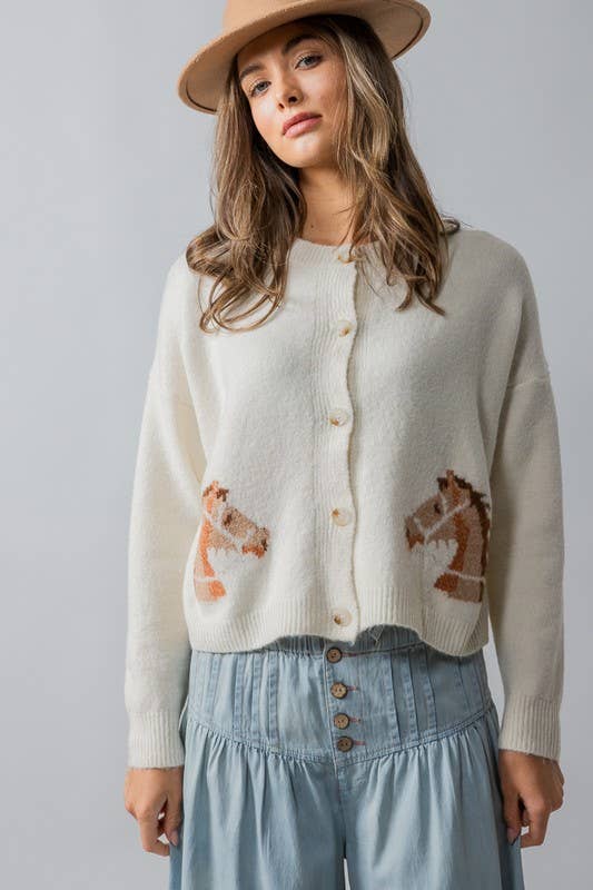 Western Horse Graphic Button Front Cropped Cardigan Sweater