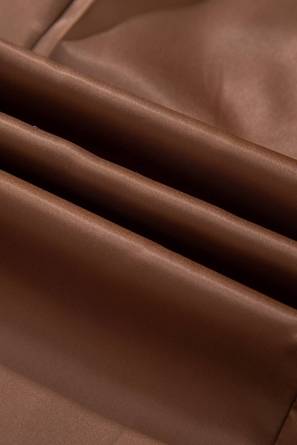 Elegant lapel neckline, double-breasted and faux-wood buttons cuffs.